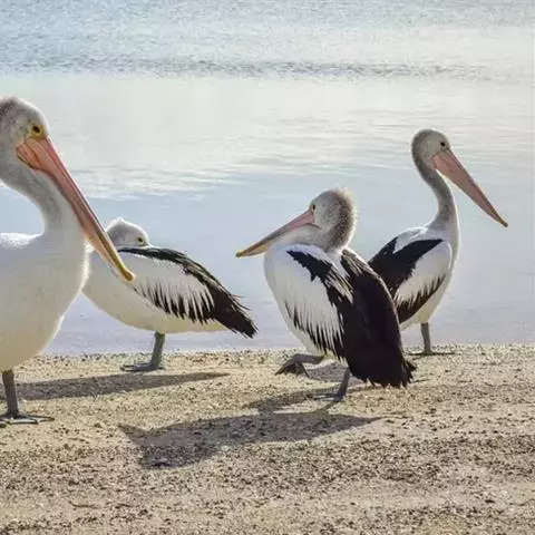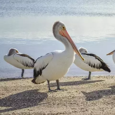 澳大利亚鹈鹕是一种大型涉禽,体重达13千克。生活于沿海及河川、湖泊等处。飞行力强而悠逸,常群飞群栖,…