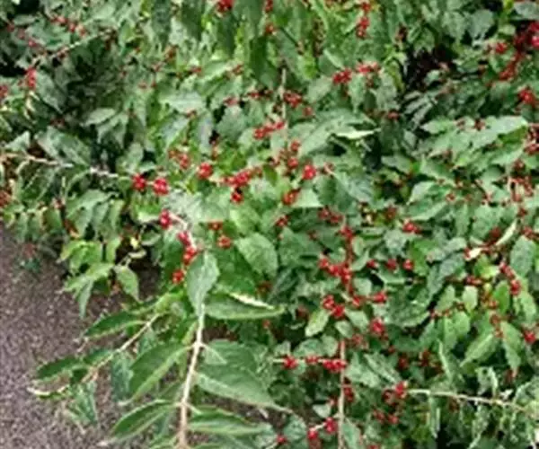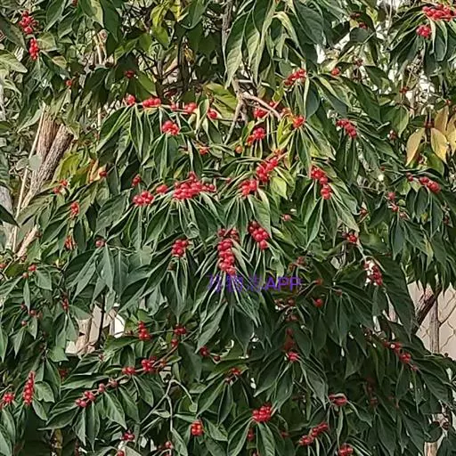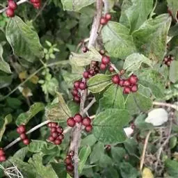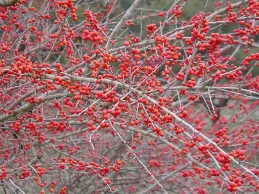 果实暗红色,圆形,直径5-6毫米;种子具蜂窝状微小浅凹点。