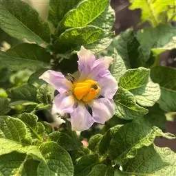 阳芋(学名:Solanum tuberosum L.)是茄科,茄属草本植物,高可达80厘米,无毛或被疏柔毛。地下茎块状,扁圆形或长圆形,叶为奇数不相等的羽状复叶,小叶常大小相间,卵形至长圆形,叶片最大可长6厘米,伞房花序顶生,花白色或蓝紫色;萼钟形,裂片披针形,花冠辐状,子房卵圆形。浆果圆球状,花期夏季。