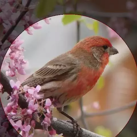 红眉朱雀:体长15厘米,是一种中等体型的朱雀。上体褐色斑驳,眉纹、脸颊、胸及腰淡紫粉,臀近白。…