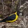 黄颈拟蜡嘴雀:小型鸟类,体长20-22厘米。嘴粗大,黑色。雄鸟整个头、颈、颏、喉和上胸辉黑色,…