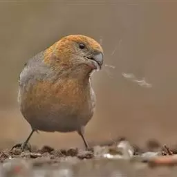 交嘴雀喜啄食大量的落叶松和云杉及冷杉的种子,倒悬进食,用交嘴嗑开松子。
