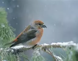 交嘴雀是寒温带针叶林鸟类,巢穴筑在松枝茂密的地方,巢用细枝,小草筑成杯状,里面铺垫着柔软的羽毛。冬季游荡且部分鸟结群迁徙。飞行迅速而带起伏。