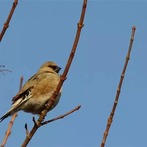 锡嘴雀:全长184厘米,头顶棕褐,头侧及腰和尾上覆羽等较淡;后颈灰色,翕和下背微褐;翅上的内侧覆羽…