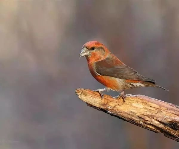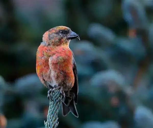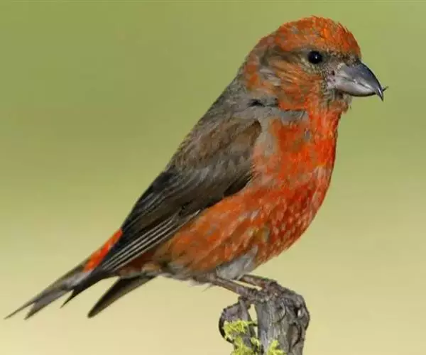 交嘴雀的翅膀和尾巴是黑褐色的,身体其他部分是美丽的红色,交嘴雀的嘴长相奇特,上下嘴不能像其他鸟类那样合在一起,而是互相交叉着,而且嘴尖分别向上下伸出来很长。