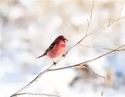 长尾朱雀:体长18厘米,体重16-26克。雄鸟额、颏和眼后为暗红色,…