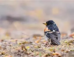 燕雀属小型鸟类,体长14-17厘米。嘴粗壮而尖,呈圆锥状。雄鸟从头至背辉黑色,背具黄褐色羽缘。腰白色,…