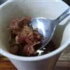 4、五花肉剁成沫,加入半勺生抽与少一汤勺清水搅拌均匀,腌制10分钟;(肉沫加水是为了翻炒时不粘在一团)