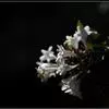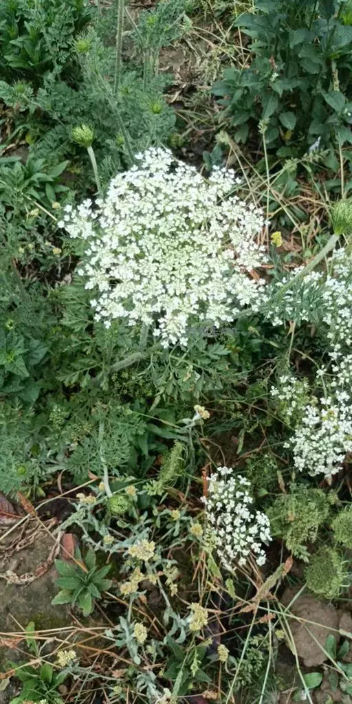 伞房花序直径2-5厘米,多花;花序梗被长柔毛和星状毛;花蕾球形或倒卵形;花冠直径8-15厘米;花梗长2-12毫米;萼筒杯状,高约3.5毫米,直径约3毫米,密被星状毛,裂片三角形,较萼筒短,先端钝;花瓣白色,阔倒卵形或近圆形,长3-7毫米,宽3-5毫米,先端圆,基部急收狭,两面均被毛,花蕾时覆瓦状排列;外轮雄蕊长4-4.5毫米,花丝钻形或近截形,内轮雄蕊长3-4毫米,花丝钻形或具齿,齿长不达花药,花药球形,具柄;花柱3,较雄蕊稍短。