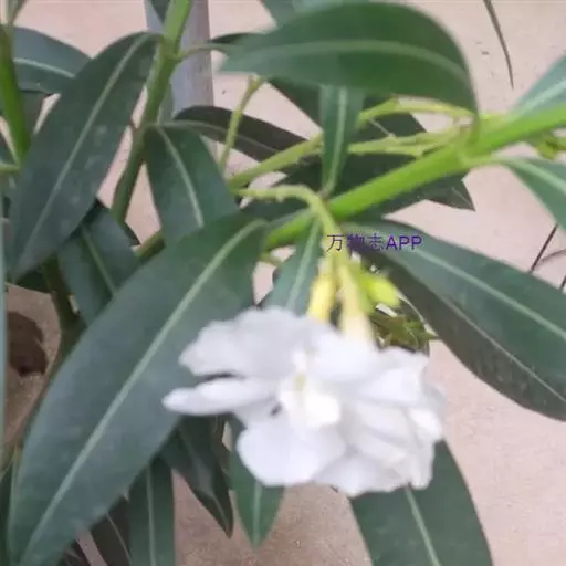 夹竹桃按颜色一般分为红花夹竹桃(Nerium indicum Mill.)、黄花夹竹桃(Thevetia peruviana(Pers.)K.Schum.)和白花 白花夹竹桃,摄于杭州西湖湖畔 夹竹桃三种,其中白花夹竹桃为人工栽培变种,在中国南北各地均有分布,以云南、广东、广西、河北等地多见,