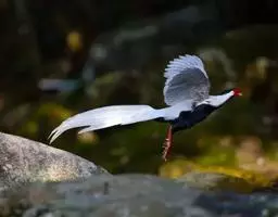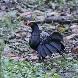 蓝马鸡是珍稀名贵的禽类,羽毛美丽,可作装饰用,头侧绯红,耳羽簇白色、突出于颈部顶上,通体蓝灰色,…