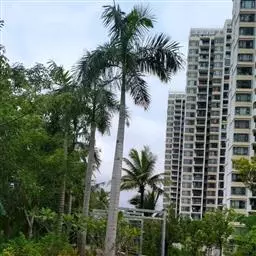 挖苗木时可保留4-7片叶,运输前应把枝叶向上包好,保护好尾梢。用编织袋将士球包严,再用绳子打网状将编织袋缠紧。随掘、随运、随到,随栽植。栽植前,先根据设计定点定位挖种植穴,穴直径比土球直径大1/3左右,深度比土球高度大20厘米左右,在挖好的种植穴基部填入肥沃的细土。栽植时,取出植株包裹土球的包装物,逐层填入肥沃细土,每填入厚度30厘米的细土要用粗棍盅实一次。待差约10-15厘米填满时灌入清水,让填土及土球吸透水分,再将余土填上,直到树干基部稍呈鼓凸状为止。栽植完成后应立即立支柱支撑植株,假槟榔树冠体积相对较小,加之事先已对其进行修剪,因此使用矮三角术架支撑即可。
