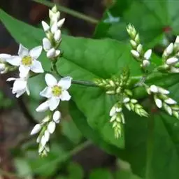 花序总状,顶生或腋生,花排列稀疏;苞片卵形,长2-3毫米,每苞内具2-4花,花梗中部具关节;花被5深裂,白色或淡红色,花被片椭圆形,长约2毫米;雄蕊8, 比花被短;花柱3,短,柱头头状。