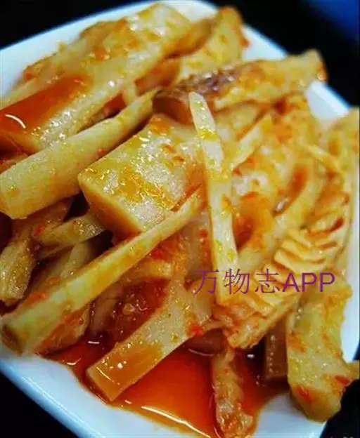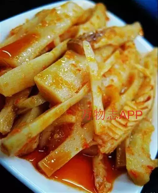 湖南是冬笋的主要产区之一,湘西山区人民尤喜食笋。此莱是以冬笋尖为主料制成,白中带红,脆嫩鲜辣,富有浓郁的地方特色。