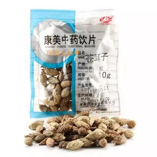 菊科植物苍耳的干燥成熟带总苞的果实。