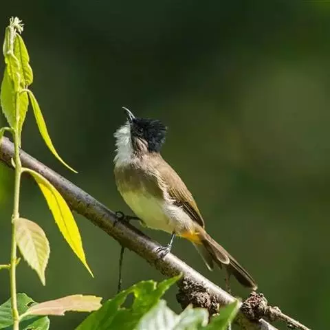 四、角嘴海雀,我国可见种。身体暗污色,上体具灰色横斑及杂斑。嘴橘黄或黄色,头部具两道特征性白色条纹。繁殖羽的明显特征为眼后的白色眉纹及眼下的白色髭纹。嘴及脚的橘黄色较浓,上颚基部具一小的浅色角状物,角嘴海雀因此得名。