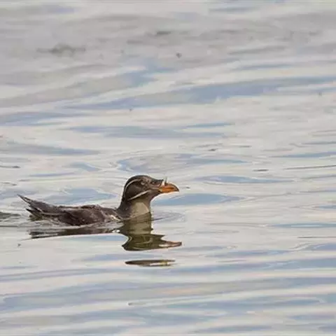 角嘴海雀,是海雀科、角嘴海雀属的中型海鸟,体长32-41厘米,嘴短而粗呈圆锥状、橙色。夏羽上嘴基部…