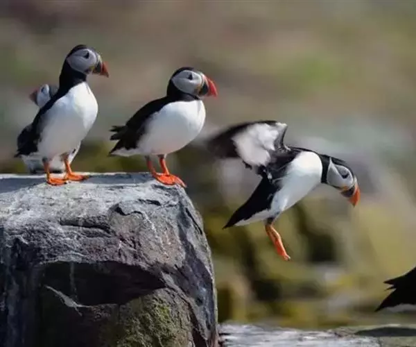 一、海鹦(sea parrot,puffin),亦名善知鸟(good tidings bird)。最常见也是最引人注目的一种海雀,主要生活在北大西洋两岸,如冰岛、挪威北部沿海,冰岛的威斯特曼岛上栖息着世界最大的海雀群落之一。
