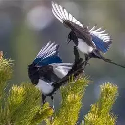 喜鹊:是鸦科、鹊属的一种鸟类。共有11个亚种。体长40-50厘米,雌雄羽色相似,…