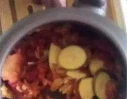 烤肉饭主料由土豆,烤肉、青豆等食材,辅料由葱,姜,蒜,洋葱,生抽,老抽,蜂蜜,耗油,…