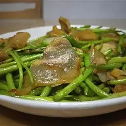 4.把腌制好的肉片放到油锅里用热油炸一炸,炸过的肉片吃起来肥而不腻。炸至3-5成熟即可。