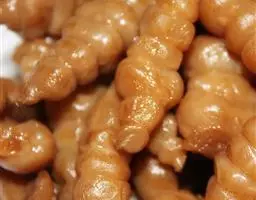北豆腐(较有韧性)切大片,炸至表面金黄,发硬。