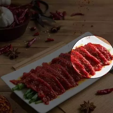 2.切好后用酱汁腌制时间最好不要低于2.5小时也不要超过24小时。酱汁主要由老抽与白糖为主料,根据个人口味适量调和老抽与白糖的比例,喜欢甜的可增加白糖比例(调和酱汁时可粘一些尝一尝)。酱汁的多少根据肉片多少定量,一般酱汁能均匀的遍布肉片为适宜。