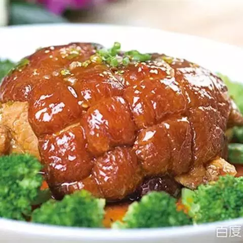 做把子肉,要选1斤左右的白条猪即可,不肥不瘦。一斤切八块,蒲草捆好。冒两遍,二遍血水清汤。放入坛子,不放盐全靠酱油调味,猛火开锅文火炖,炖好的把子肉肥而不腻、瘦而不柴,入口有醇厚的余香,掉在地上,就像豆腐一样摔的稀碎。 把子肉套餐