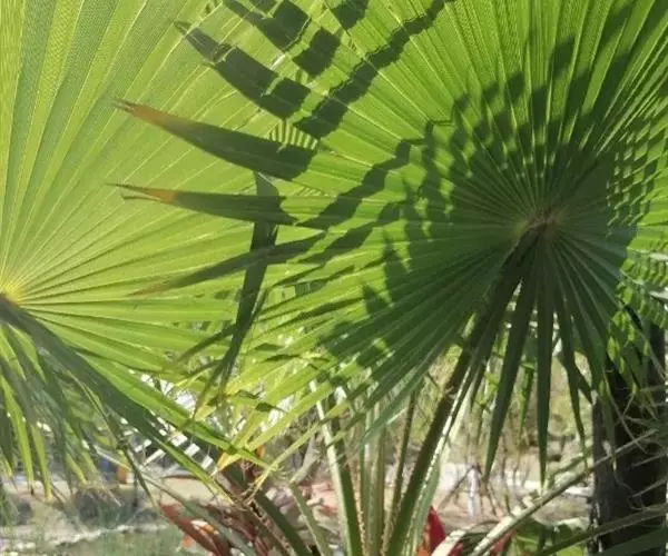 棕榈叶柄上有许多连续分布的小钝刺,叶片不仅小,并且叶片裂缝较为明显,因此不适合做扇子。自然状态下,棕榈叶片末端挺直坚硬;棕榈茎杆上的纤维浓厚而密,不易脱落。