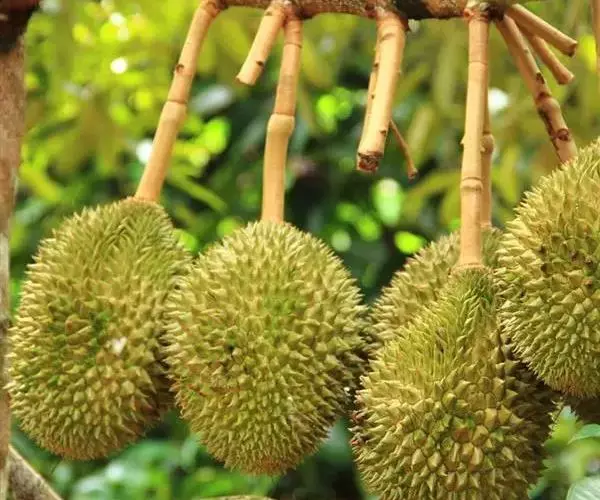 (3)长柄:因为此种榴梿的果柄比其他品种要长而得名,此品种柄长且圆,整颗榴梿也以圆形为主,果肉、果核也呈圆状,皮青绿色,刺多而密,果核大,果肉少但细腻而味浓。