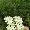 复伞形式聚伞花序生于具1对叶的短枝之顶,直径2-4厘米,有5-30朵花,总花梗纤细,长1.5-4厘米,第一级辐射枝5-7条,花直接生其上,花梗甚短;萼齿三角形,长约0.6毫米,无毛;花冠乳白色,辐状,直径6-8毫米;雄蕊极短,花药黄白色。