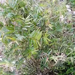 凤尾竹 Raeusch. ex Schult. ’Fernleaf’ R. A. Young)是禾本科,簕竹属孝顺竹的变种。植株较高大,杆高可达6米,竿中空,小枝稍下弯,下部挺直,绿色;竿壁稍薄;节处稍隆起,无毛;叶鞘无毛,纵肋稍隆起,背部具脊;叶耳肾形,边缘具波曲状细长繸毛;叶舌圆拱形,叶片线形,上表面无毛,下表面粉绿而密被短柔毛,小穗含小花,中间小花为两性;外稃两侧稍不对称,长圆状披针形,先端急尖;内稃线形,脊上被短纤毛,花药紫色,子房卵球形,羽毛状。成熟颖果未见。原产中国,华东、华南、西南以至台湾、香港均有栽培。凤尾竹喜温暖、湿润和阳光充足的环境,耐寒。宜土层深厚、肥沃、疏松的微酸性壤土。该种观赏价值较高,宜作庭院丛栽,也可作盆景植物。全草或根入药,味淡、微苦,性寒,有清热利湿、凉血止血、消肿解毒功效,可治痢疾、泄泻等多种病症。凤尾