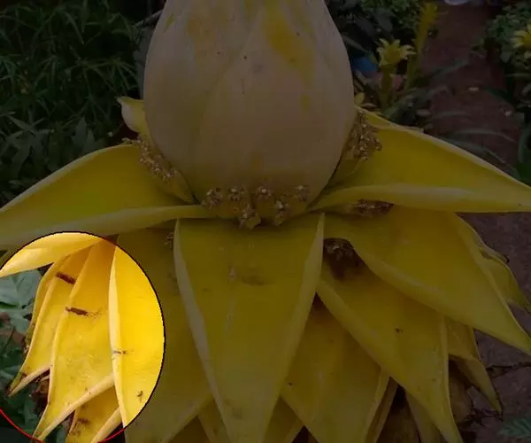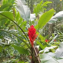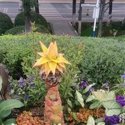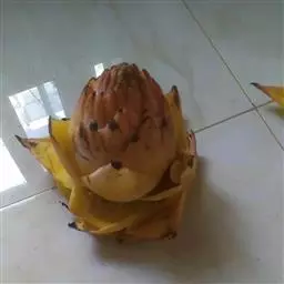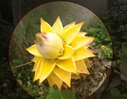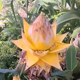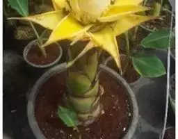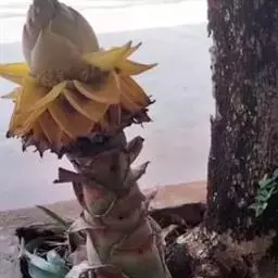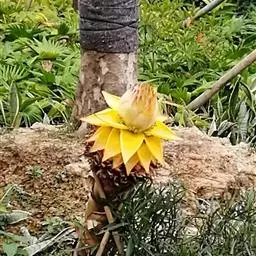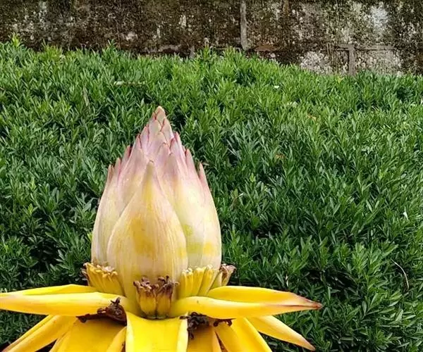 紫苞芭蕉形如一枝亭亭玉立、含苞待放的荷花,但却开在高高的芭蕉树上,这就是紫苞芭蕉。