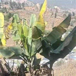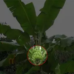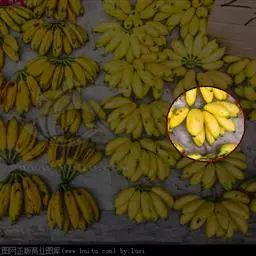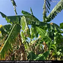 香蕉’),芭蕉科芭蕉属多年生草本植物,植株丛生,有匐匍茎;假茎浓绿有黑色斑点;叶片长圆形,…
