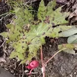 山荷叶属为多年生草本,有匍匐状、粗厚、具节的根茎;根生叶1枚,大,盾状,分裂,生于粗厚的柄上其状如伞,…