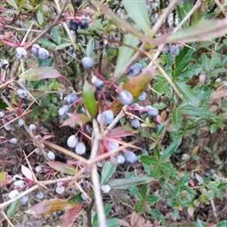 浆果球形或阔椭圆形,暗紫黑色,被白粉。种子红褐色,无假种皮。x=6。