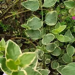 五彩络石为常绿蔓性藤本植物。匍匐生长,茎具白色乳汁,叶对生,革质,卵形,长3厘米,宽2厘米。喜阳耐…