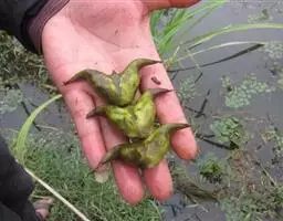 欧菱是千屈菜科菱属的一年生浮水水生草本植物。别名菱。根二型;茎柔弱,分枝;叶二型,浮水叶互生,…