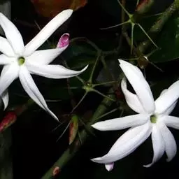 素馨花分株繁殖更为简单易行,适宜于一般家庭少量栽植。分株繁植时,选取母株周围串根萌蘖苗顺根撬出,剪去藤蔓10-50cm以上部分后用塑料薄膜扎紧封顶即成1株新苗,直接用来定植即可。如开春定植,当年冬季可现蕾,次年阳春可大量开花。