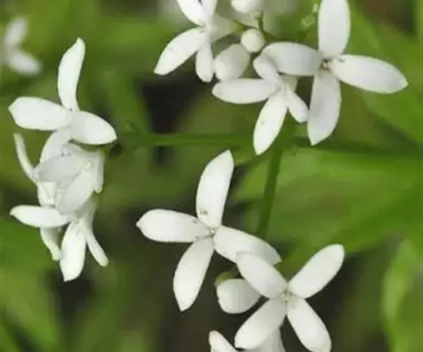 复聚伞花序常排列呈圆锥状,顶生或腋生,有花多朵,密集;苞片线形,长1-5毫米;花梗短或无,果时增,粗增长,无毛或密被毛;花芳香;花萼筒状,光滑或被短柔毛,果时增大,萼齿三角形,不明显,或几近截形;花冠白色,高脚碟状,花冠管纤细,长1.7-3.5厘米,裂片4-5枚,披针形、椭圆形或长圆形,长5-10毫米,宽3-7毫米,先端钝或锐尖;花柱异长。