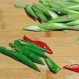 3、将海瓜子洗净;锅内放油,烧热放入葱花、海瓜子,海瓜子八成熟时,放入青辣椒翻炒,开口即熟,放入味精,花椒油和香油出锅即可。