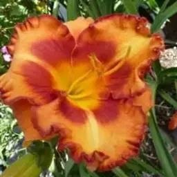 7、海尔范萱草:高度40--45厘米,颜色为复色,花期6~9月,年分蘖率5-7倍,在零下20度的环境里能自然越冬。