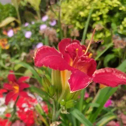 6、红色海盗萱草:抗病能力极强,对土壤要求很低,耐涝抗旱。高度25到30厘米,花期五月下旬至十月初,年分蘖率8个。