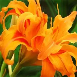多年生草本,根状茎粗短,具肉质纤维根,多数膨大呈窄长纺锤形。叶基生成丛,条状披针形,长30~60cm,宽约2.5cm,背面被白粉。夏季开橘黄色大花,花葶长于叶,高达1m以上;圆锥花序顶生,有花6~12朵,花梗长约1cm,有小的披针形苞片;花长7~12cm,花被基部粗短漏斗状,长达2.5cm,花被6片,开展,向外反卷,外轮3片,宽1~2cm,内轮3片宽达2.5cm,边缘稍作波状;雄蕊6,花丝长,着生花被喉部;子房上位,花柱细长。