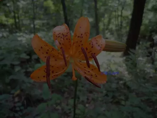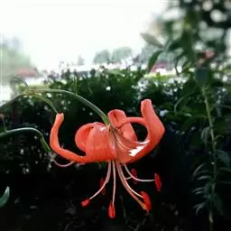 东北百合(Lilium distichum Nakai),别名卷莲花、老哇芋头、轮叶百合、伞蛋花、山丹花,为百合科、百合属多年生球根花卉。鳞茎卵圆形,白色,有节。苞片叶状,花淡橙红色,具紫红色斑点;花被片稍反卷,蒴果倒卵形,花期7-8月,果期9月,具有重要的观赏应用价值。中国东北有分布。
