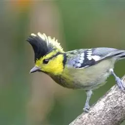 褐冠山雀(学名:Lophophanes dichrous):为小型鸣禽。体长100-120毫米。头顶和长的羽冠褐灰色或灰色,其余下体橄榄褐色或暗灰色,额、眼先、颊和耳覆羽皮黄色,颈侧棕白色形成半领环状。下体淡棕色或棕褐色,两翅和尾褐色具淡色羽缘。喙短钝,略呈锥状;鼻孔略被羽覆盖;翅短圆;尾适中,方形或稍圆形;腿、脚健壮,爪钝。羽松软,雌雄羽色相似。