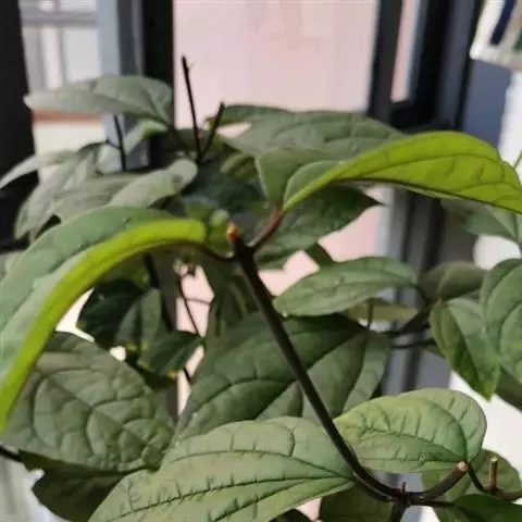 海州常山 灌木或小乔木,高1.5-10米;幼枝、叶柄、花序轴等多少被黄褐色柔毛或近于无毛,老枝灰白色,具皮孔,髓白色,有淡黄色薄片状横隔。叶片纸质,卵形、卵状椭圆形或三角状卵形,长5-16厘米,宽2-13厘米,顶端渐尖,基部宽楔形至截形,偶有心形,表面深绿色,背面淡绿色,两面幼时被白色短柔毛,老时表面光滑无毛,背面仍被短柔毛或无毛,或沿脉毛较密,侧脉3-5对,全缘或有时边缘具波状齿;叶柄长2-8厘米。