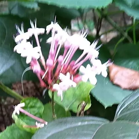 伞房状聚伞花序顶生或腋生,通常二歧分枝,疏散,末次分枝着花3朵,花序长8-18厘米,花序梗长3-6厘米,多少被黄褐色柔毛或无毛;苞片叶状,椭圆形,早落;花萼蕾时绿白色,后紫红色,基部合生,中部略膨大,有5棱脊,顶端5深裂,裂片三角状披针形或卵形,顶端尖;花香,花冠白色或带粉红色,花冠管细,长约2厘米,顶端5裂,裂片长椭圆形,长5-10毫米,宽3-5毫米;雄蕊4,花丝与花柱同伸出花冠外;花柱较雄蕊短,柱头2裂。核果近球形,径6-8毫米,包藏于增大的宿萼内,成熟时外果皮蓝紫色。花果期6-11月。