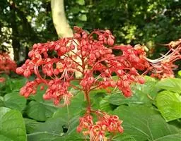 海州常山花序大,花果美丽,可配置于庭院、山坡、溪边、堤岸、悬崖、石隙及林下。
