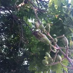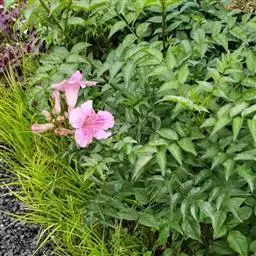 厚萼凌霄栽植前应对植株进行修剪,对主藤进行轻短截,主藤上着生的侧枝全部疏除,主藤萌发新枝后,在其上选择一个长势最壮、靠顶端较近的枝条做主藤的延长枝。待主藤延长枝长到一定高度后应及时搭设攀缘物进行牵引,使其尽早攀缘至棚架顶端,第二年早春对主藤延长枝进行轻短截,促发侧枝。主藤延长枝每侧保留3-4个侧枝,侧枝大致呈“丰”字形分布,第三年对侧枝进行轻短截,促生二级侧枝。按此方法修剪,再加上充足的水肥管理,藤蔓可很快铺满棚架。此后的修剪应着重对过密枝、重叠枝、病虫枝、干枯枝进行疏除,且勿使枝条重叠,否则会影响植株通风透光,引发病虫害。